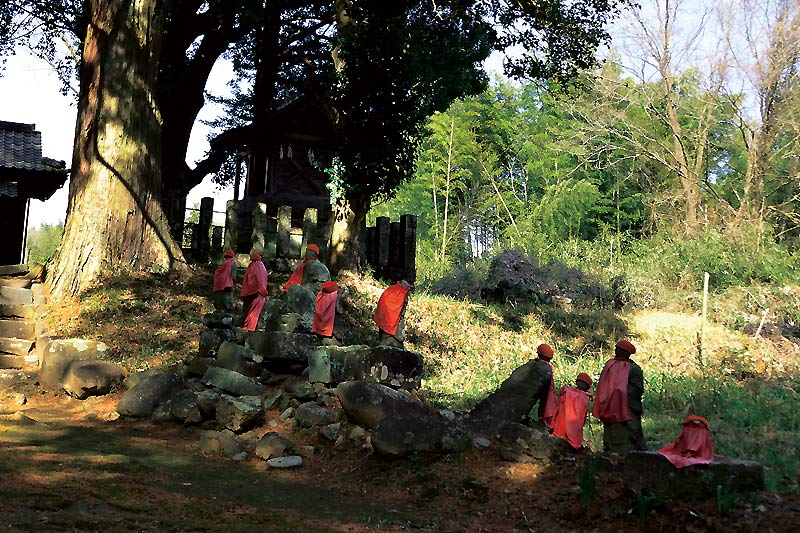 古くは「蓮寿庵(れんじゅあん)」といって、二十一代藩主頼寛(よりひろ)の夫人が夫の菩提を弔うために建てました。その後「清明寺(せいめいじ)」となって、中尾観音と呼ばれるようになりました。ここの本尊は願成寺から移され、どんな願いにも応えてくださると、多くの人々から信仰されています。境内続きには、相良家の墓地や六地蔵、また受験に霊験あらたかな「源兵衛さん(げんべえさん)」。入り口には、恐ろしい形相の石造りの青面金剛像などがあります。
